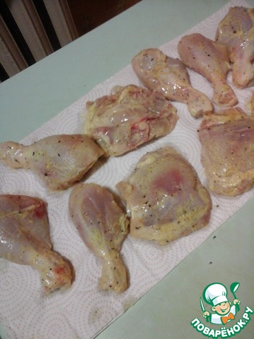 Залить полученным маринадом курицу и отправить ее на ночь в холодильник.