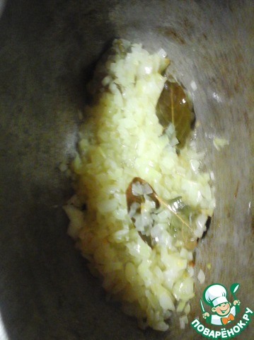 В сотейнике раскалить растительное масло. Положить туда гвоздику, лавровый лист, мелко нарезанный лук и жарить до мягкости лука.