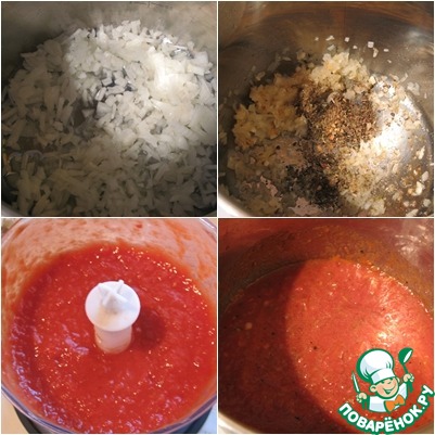 Добавить кумин, кориандр, пименто, орегано, тимьян и острый перец. Немного прожарить, затем влить измельчённые томаты и варить, помешивая, 15-20 минут.