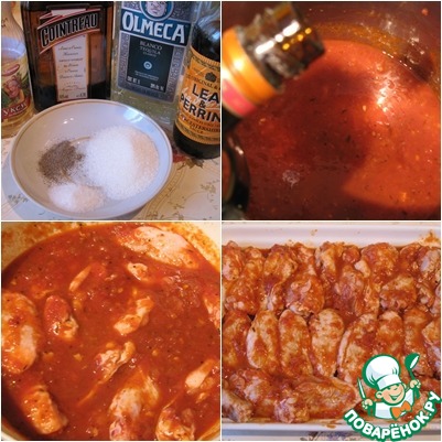 Пока крылышки запекаются, уварить оставшийся маринад на треть (или наполовину) и подать к крылышкам.