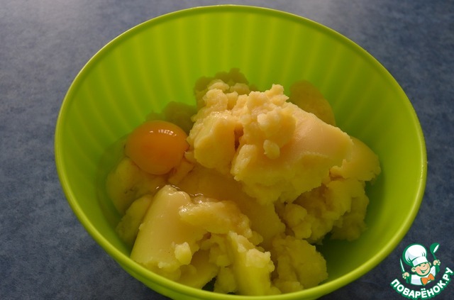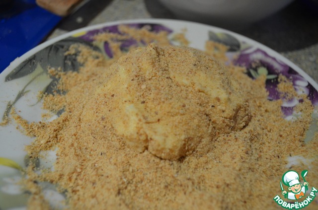 Аккуратно руками сформировать "котлетку" и обсыпать панировочными сухарями.