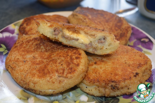 | Зразы очень любит мой муж, но так сложилось, что я никогда ему их не готовила. И вот сегодня, 23 февраля я решила порадовать своего любимого. Получились у меня вот такие праздничные зразы с сюрпризом. Мой муж был в полном восторге и очень просил готовить их по-чаще. |