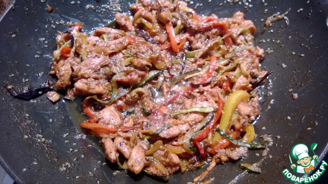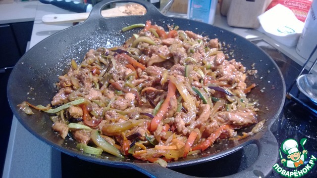 | Снова привожу экспериментальное блюдо, которое готовила супруга, исходя из своего опыта. Как-то залежался у нас вок без дела и жена решила использовать его по назначению и приготовила очень вкусное блюдо! А если в него еще добавить остернького халапеньо, получится необыкновенно! |