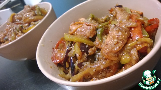 Курица с овощами в воке