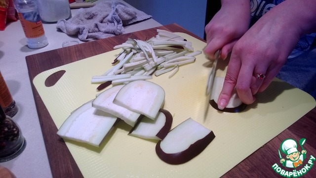 Баклажан нарезаем тонкими полосками.