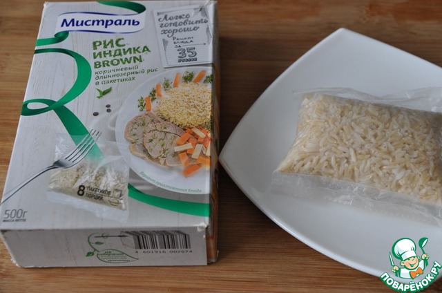 Готовый рис в пакетиках достаём. Даём воде стечь.