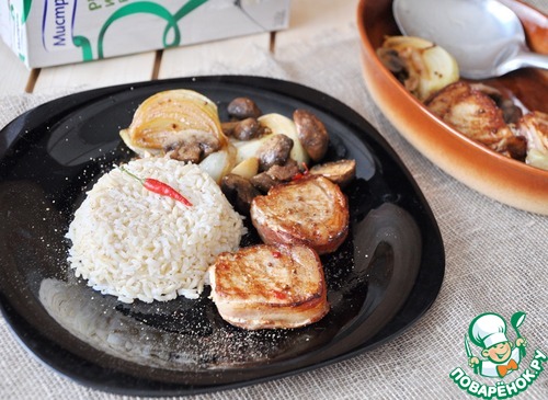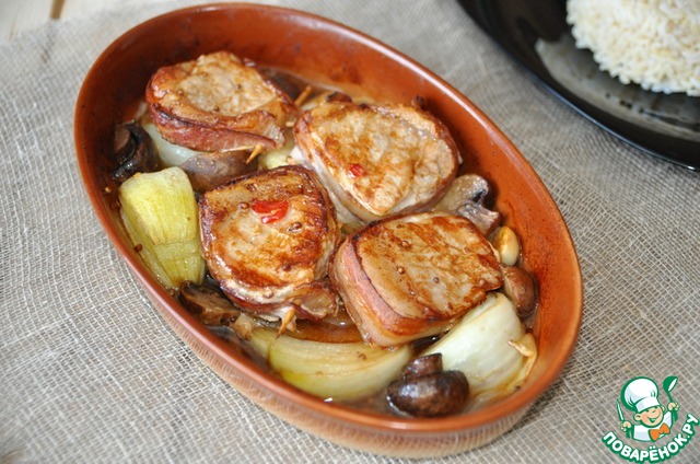 | Идеальное сочетание мяса, бекона и грибов в ароматном соусе. Идея подсмотрена в ресторане с одноимённым названием в нашей Приморской столице Владивосток. Блюдо не оставит никого равнодушными. Гарнир - рис. |