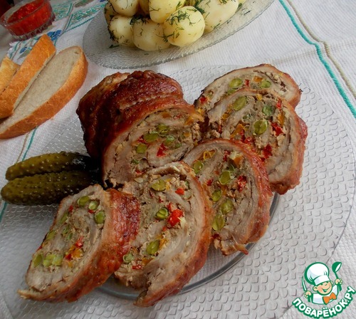 | Предлагаю вам вариант очень вкусного, яркого и уютного обеда для всей семьи. Ароматы мяса и овощей, так и манят на кухню, а вкус такой, что за уши не оттащишь. Я подавала с отварным картофелем, со сливочным маслом и укропом. Остатки рулета можно отправить в холодильник, кушать как буженину, ведь холодным он тоже очень вкусный. Овощи можно использовать на ваше усмотрение, но мне понравилось именно это сочетание. Мясо лучше выбрать одним куском (меньше мороки)или как я, разрезать на две-три части и отбить, когда сворачиваем, то не видно, из скольких кусочков сделан рулет. Приятного всем аппетита! |