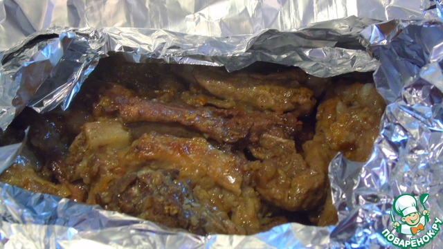 Выкладываем на фольгу, заворачиваем и отправляем в разогретую до 190С духовку на 1,5 часа,