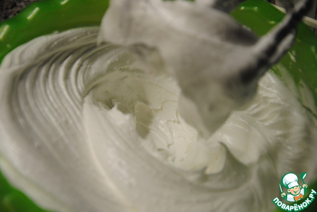 Затем, понемногу добавляем сахар и продолжаем взбивать до устойчивых пиков.