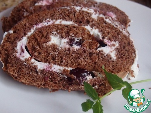 С чаем или с кофе этот рулет просто бесподобен. Сладкоежки могут украсить его ложечкой вишневого варенья.