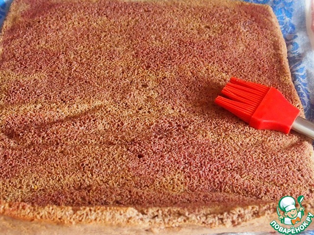 Развернуть рулет и осторожно кисточкой смочить его полученной жидкостью.
