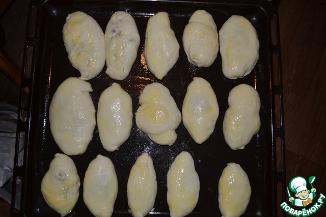 Лепим пирожки, смазываем взбитым яйцом и в духовку. Выпекать при температуре 180 °С, 20 минут ( не обращайте внимания, что кривенькие)))