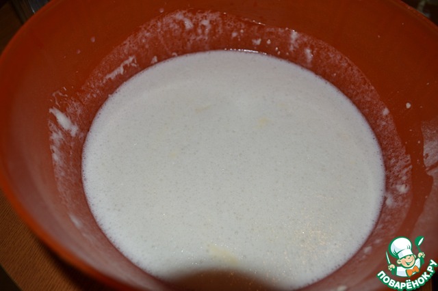 Даем опаре постоять в теплом месте без сквозняков 15 минут, опара должна немного вспениться, хорошо её перемешать.