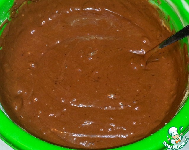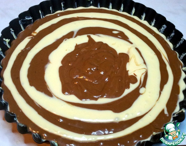 ложки тесто поочерёдно. Тёмное тесто, затем