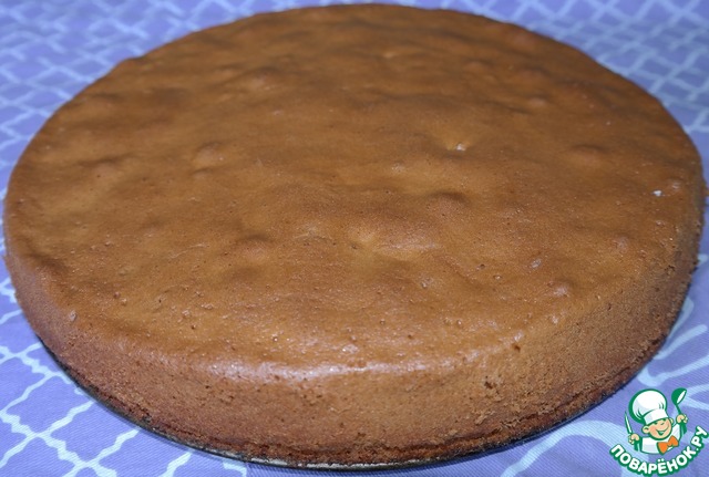 Разрезаем бисквит пополам и очень хорошо пропитываем коржи.