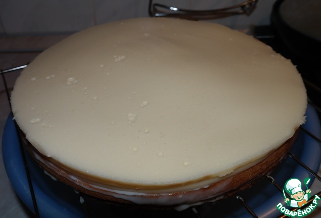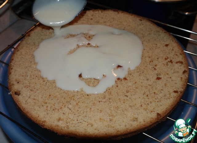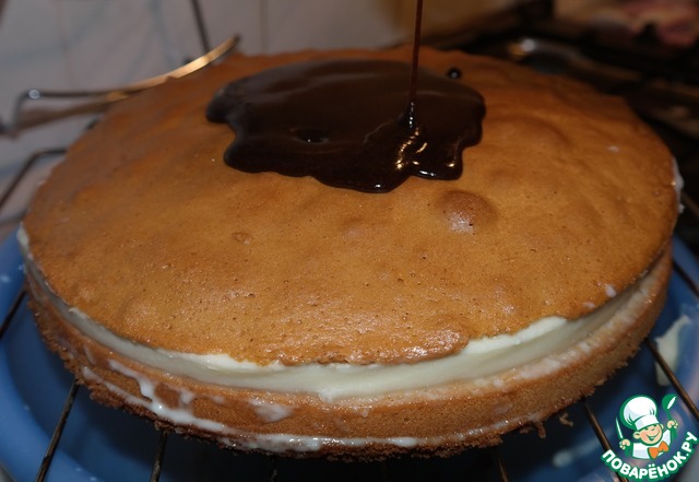 Покрываем тортик шоколадом и ставим в холод, чтобы пропитался и застыл.