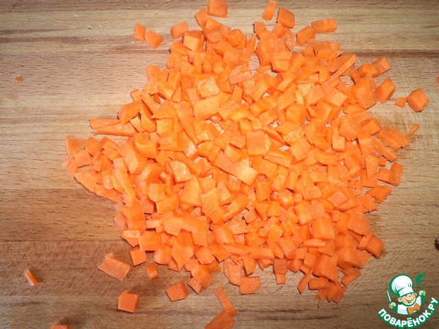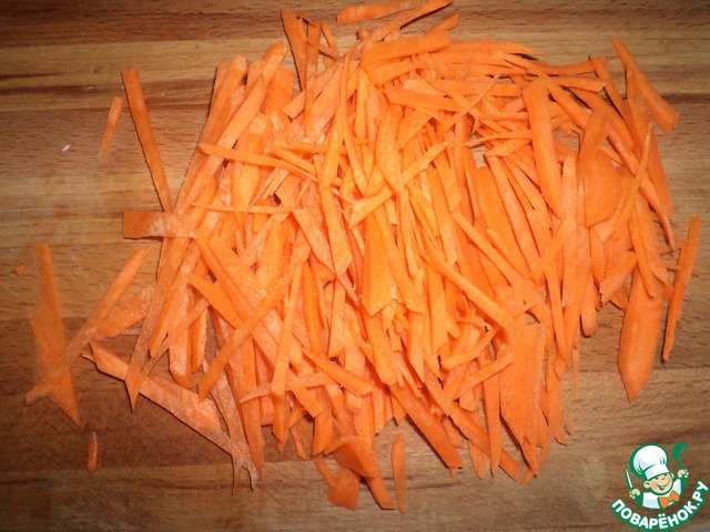Пока наш рулет выпекается, делаем гарнир. Нарезаем соломкой оставшуюся морковь.