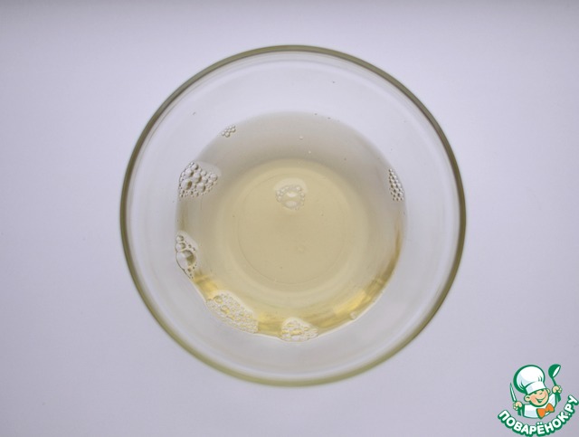 - Развести быстрорастворимый желатин в 50 мл воды.