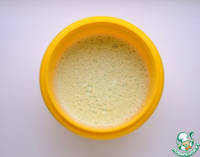 - Йогурт переложить в глубокую емкость. Добавить сахарно-ванильный сироп с желатином. Хорошо перемешать.