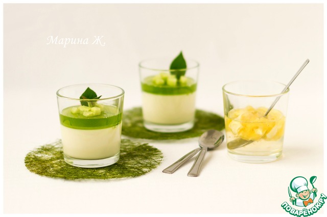 | Обратила внимание на этот десерт из-за своей любви к необычным рецептам. Пришла к выводу в очередной раз, что именно такие блюда оказываются у меня в фаворитах. Их вкус невозможно забыть из за сочетания казалось бы несочетаемого. Вкус не такой экзотический как кажется. Йогуртовое желе, я бы даже сказала мусс, невероятно нежное. Кстати, йогурт можно заменить на сметану, если его нет под рукой. В огуречном желе вкус огурца почти не чувствуется, если бы ни знала, наверное и не догадалась из чего оно. А огуречные слайсы дают приятную хрустинку. И! Весь смак в лаймовом соусе! Это невероятно вкусно, когда кушаешь, предварительно полив желе кисло-сладким, ароматным соусом. Смесь нежного, легкого, освежающего, хрустящего, кисло-сладкого, цитрусового... м-м-м... Я вам рекомендую этот десерт, не останетесь равнодушны. И еще, если вам кажется, что в десерте слишком много сахара, это не так. Десерт не приторный, как раз всего в меру. |