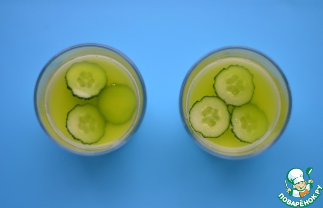 - Огуречные кубики сложить в чашу блендера, добавить сахарный сироп. Хорошо пробить (около 5 мин). Смесь процедить через мелкое сито или марлю. Если понадобится, сделайте это дважды. В жидкости не должно быть крупинок. Подождать 10-15 мин, пока осядет пена на поверхности.