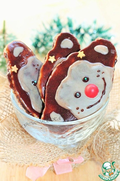С помощью шоколада, грильяжа, кондитерской посыпки сделаем носик, глазки, ротик и даем печенью, полностью застыть. Пусть ваше печенье полностью высохнет (лучше на ночь) перед складированием или упаковкой.