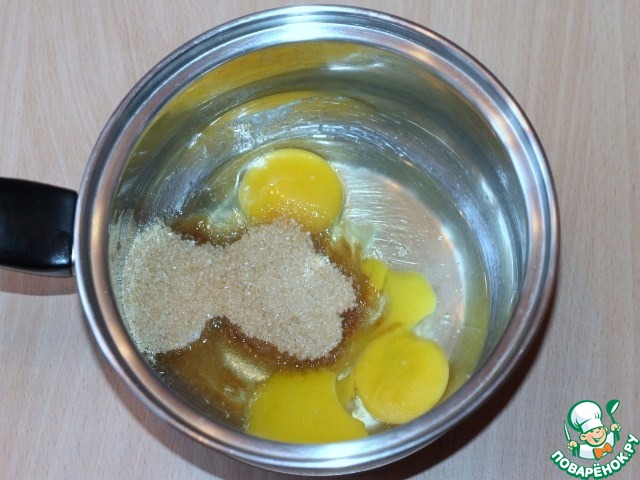 Яйца разбить в миску, добавить ванилин и сахар, соль, растереть до однородности.