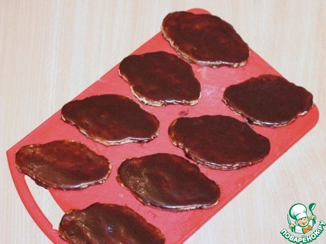 Дать печенью остыть, перевернуь. Я наносила шоколад (разрисовывала) на обратной стороне печенья, там поверхность ровней.