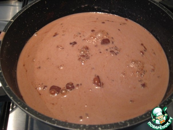 Шоколад поломать на кусочки, добавить в горячий крем, тщательно размешать до растворения шоколада.