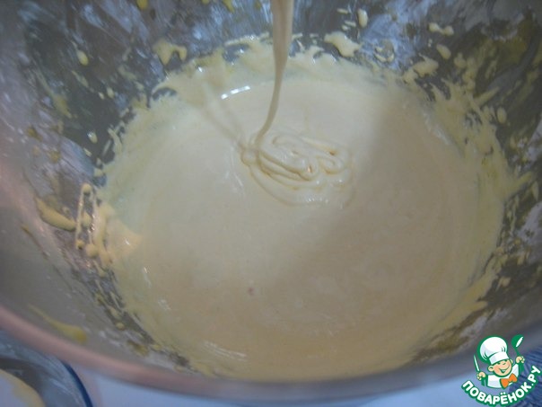 Вмешать сыпучие ингредиенты лопаткой в яичную смесь, масса не должна опасть.