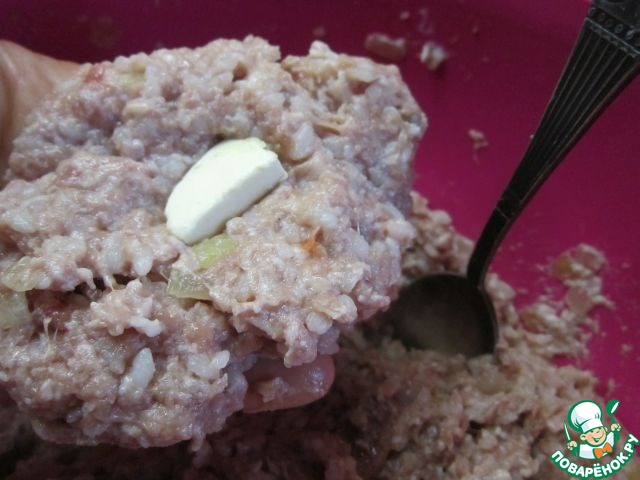Формируя их, в серединку каждой тефтели нужно положить маленький кусочек сливочного масла.