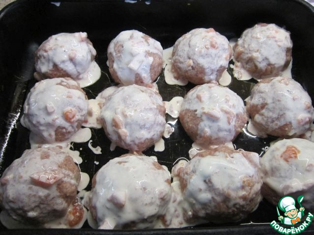 Этим соусом полить каждую тефтельку.