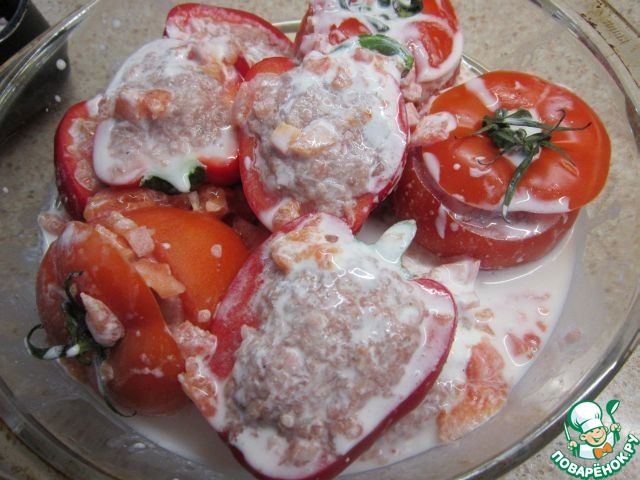 Этим же соусом полить фаршированные овощи.