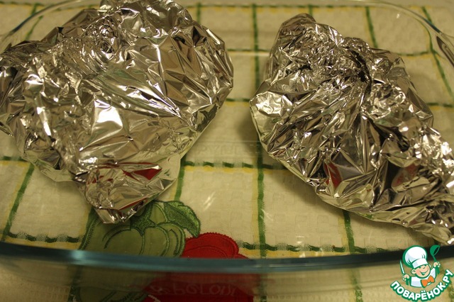 Завернуть в фольгу и запекать в духовке, разогретой до 200 градусов в течение 40 минут.