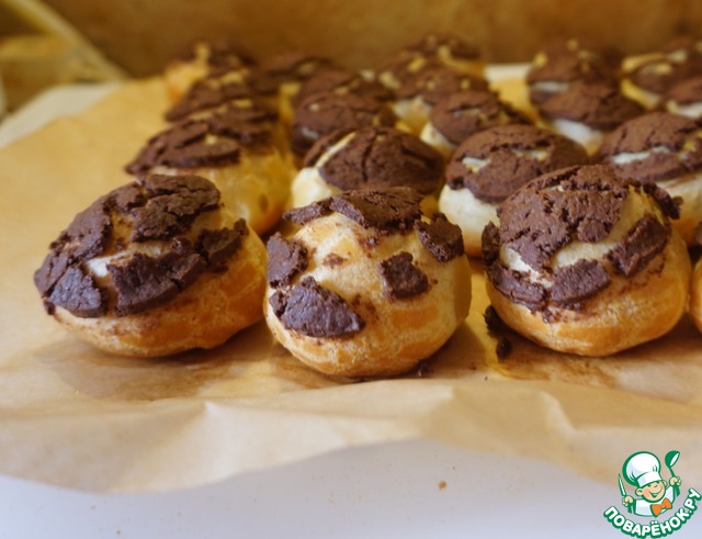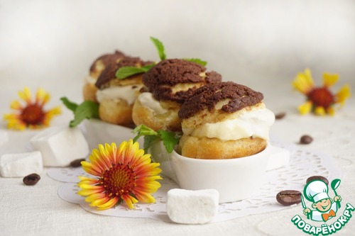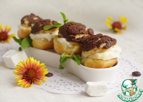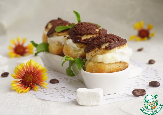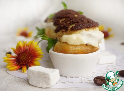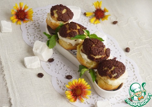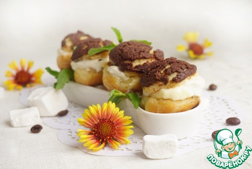 Профитроли с шоколадным штрейзелем и кофейными сливками