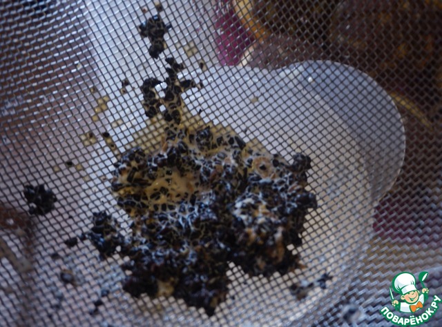 Пока профитроли остывают, возвращаемся к кофейным сливкам. Процеживаем их через сито от кофе.