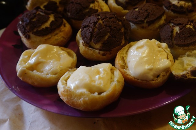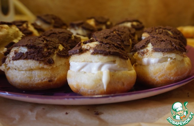 Кладем в каждый примерно по чайной ложки с горкой заварного крема.