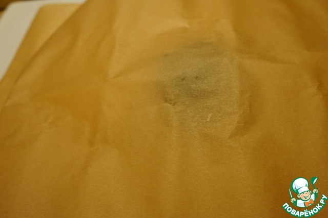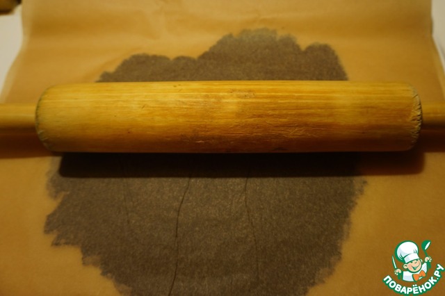Накрываем другим куском пергамента и измельчаем скалкой.