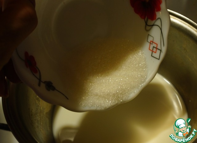 К молоку добавляем вторую половину сахара. Доводим до кипения.