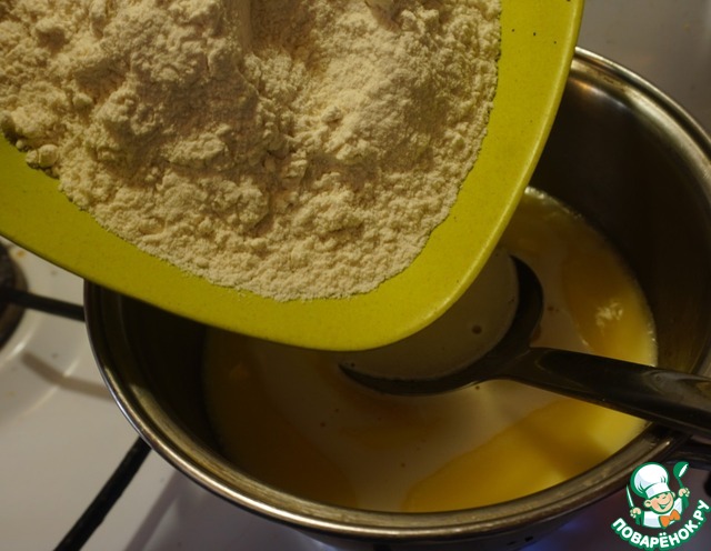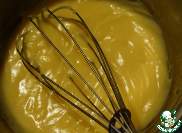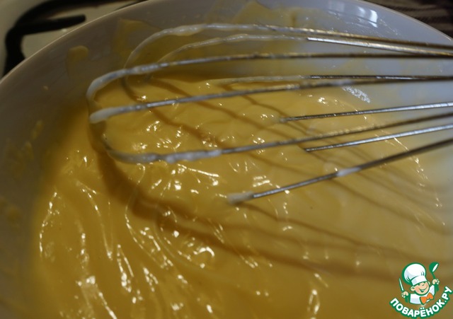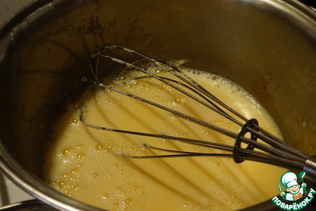 Переливаем смесь в кастрюлю и нагреваем на среднем огне, постоянно помешивая венчиком.
