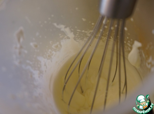 Сбиваем в крутую пену. Да именно без сахара. Сбиваются замечательно и прекрасно держат форму.