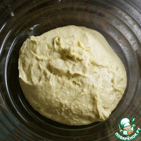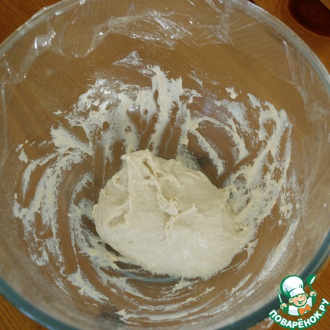 Готовое тесто получается достаточно мягким, это нормально. Переложите его в большую миску и накройте пленкой. Уберите в тихое место на 2 часа. После чего поставьте миску с тестом в холодильник еще на 12 часов.