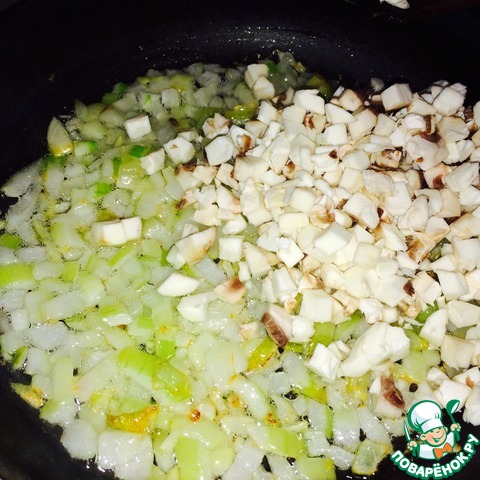 4) Обжарить наш лук и грибы