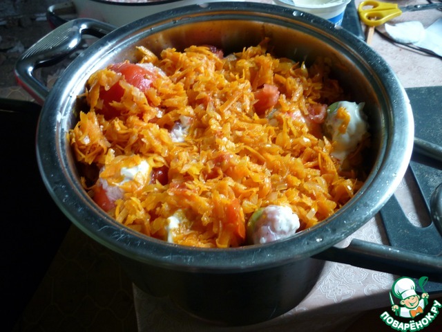 На этом этапе я закрываю казан крышкой и отправляю в разогретую до 200 градусов духовку на 1,5 часа. В этот раз поставила на самый маленький огонь на 2 часа