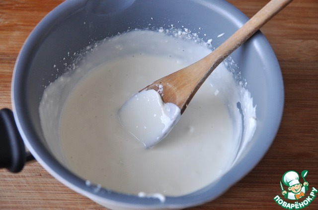 Сливки доводим до кипения, добавляем сливочный сыр.