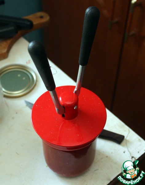 Как банки простерилизуются, закрываем. Я себе на днях купил такую шайтан-машину. Испытываю. Машинка справилась, хотя закаточная мне больше нравится.