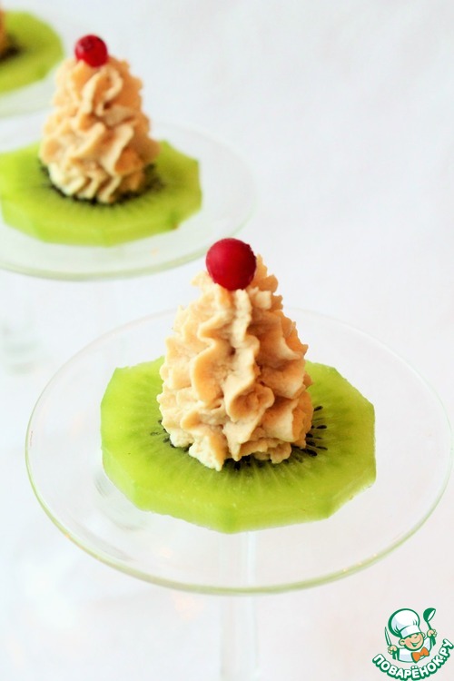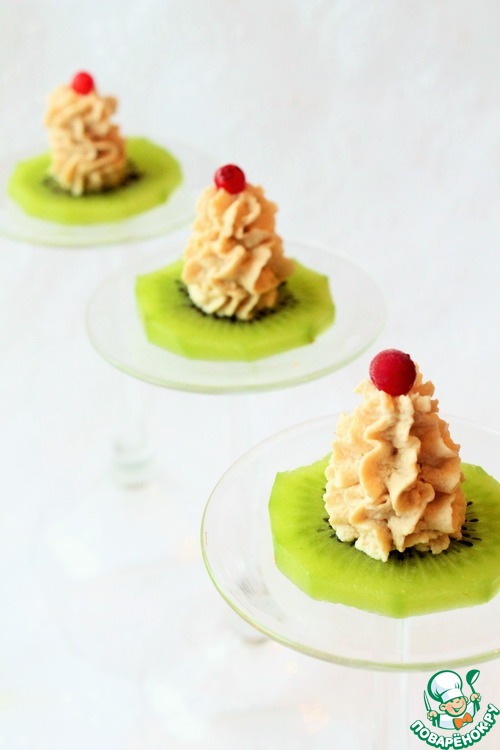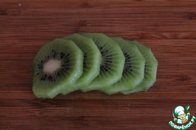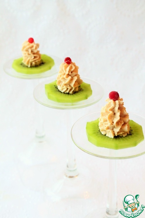 Нарезаем киви. Сверху отсаживаем куриный паштет.