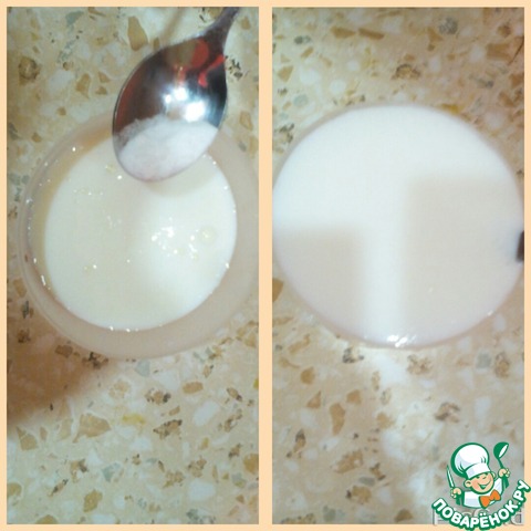 Ыыливаем к муке кофейную смесь, кефир с содой