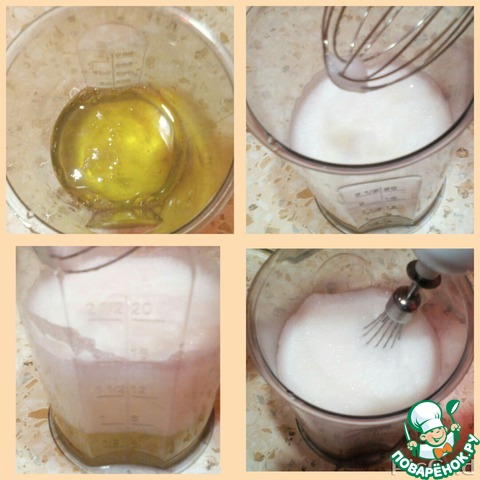 Теперь достаём белки из хол-ка и взбиваем их до плотной пены на средней, а затем высокой мощности